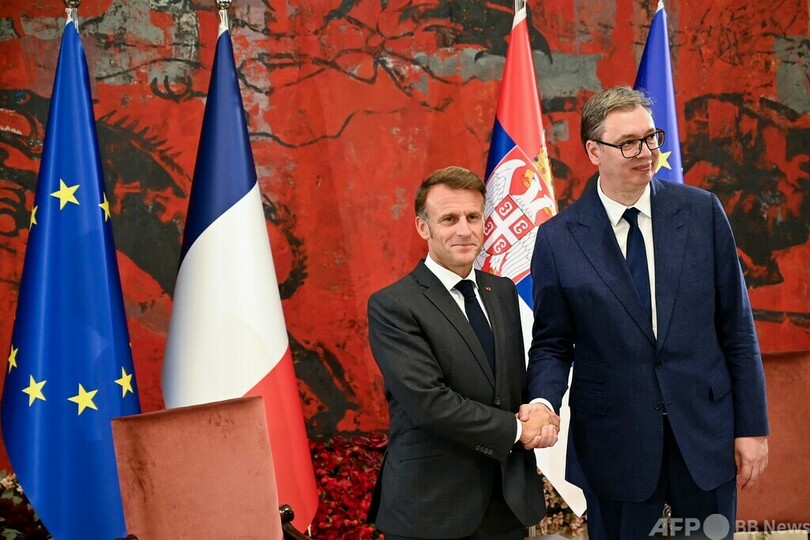 セルビアは2012年からEUの加盟候補国となっている。だが、セルビアの報道によると、マクロン氏は29日朝に公開された書簡の中で、セルビアは「完全にEUの一員だ」と評している。(c)AFP