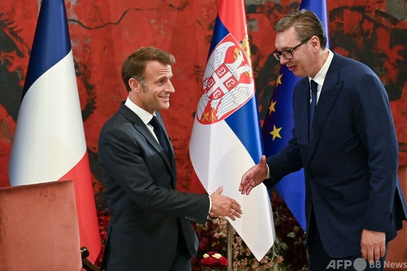 セルビアは2012年からEUの加盟候補国となっている。だが、セルビアの報道によると、マクロン氏は29日朝に公開された書簡の中で、セルビアは「完全にEUの一員だ」と評している。(c)AFP