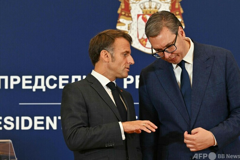 セルビアは2012年からEUの加盟候補国となっている。だが、セルビアの報道によると、マクロン氏は29日朝に公開された書簡の中で、セルビアは「完全にEUの一員だ」と評している。(c)AFP