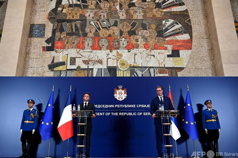 セルビアは2012年からEUの加盟候補国となっている。だが、セルビアの報道によると、マクロン氏は29日朝に公開された書簡の中で、セルビアは「完全にEUの一員だ」と評している。(c)AFP