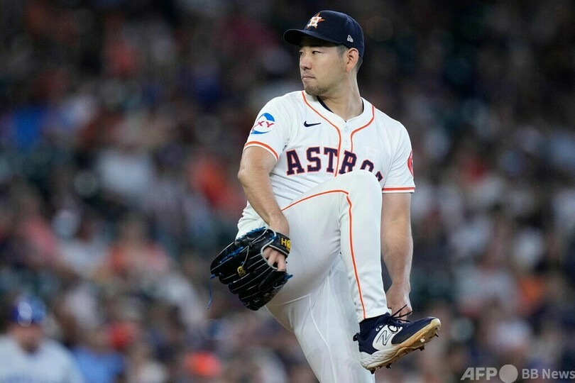 ヒューストン・アストロズ(Houston Astros)の菊池雄星(Yusei Kikuchi)はカンザスシティ・ロイヤルズ(Kansas City Royals)戦に先発登板し、7回を投げて5安打1失点、12三振を奪う好投で7勝目(9敗)を挙げた。アストロズは5‐2で勝利した。(c)AFPBB News