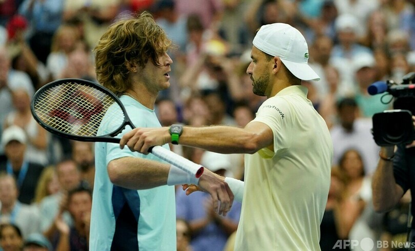 【9月2日 AFP】(更新)全米オープンテニス(US Open Tennis Championships 2024)は1日、男子シングルス4回戦が行われ、大会第9シードのグリゴール・ディミトロフ(Grigor Dimitrov、ブルガリア)が6-3、7-6(7-3)、1-6、3-6、6-3のフルセットで第6シードのアンドレイ・ルブレフ(Andrey Rublev)を破り、2019年以来となる8強入りを果たした。