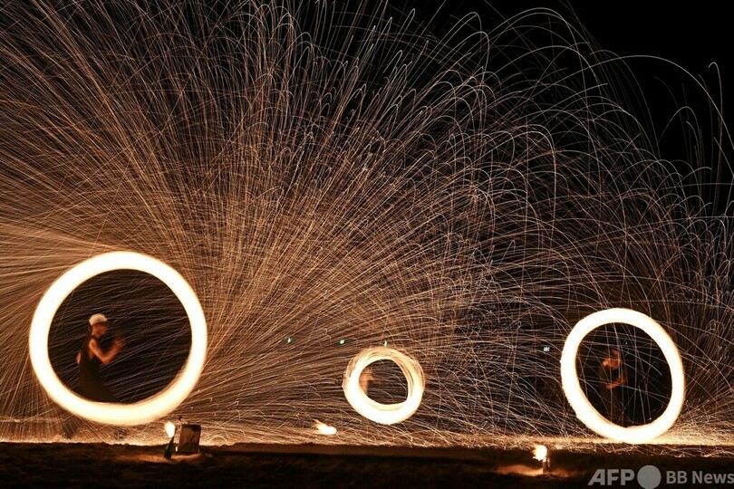 ニュース ライフ 今日の1枚 【今日の1枚】暗闇に浮かび上がる炎のパフォーマンス タイ 2024年9月16日 12:15 発信地:サムイ/タイ [ タイ アジア・オセアニア ] このニュースをシェア ‹ › ❮ 4/4 ❯ タイ・サムイ島の浜辺で炎のパフォーマンスを披露するダンサー(2024年8月29日撮影)。(c)Lillian SUWANRUMPHA / AFP 画像作成中 ! 【9月16日 AFP】タイ・サムイ(Samui)島の浜辺で、炎のパフォーマンスを披露するダンサー。(c)AFP ライフ 一覧へ> メディア・報道関係・法人の方向け 写真・動画 購入のお問合せ>