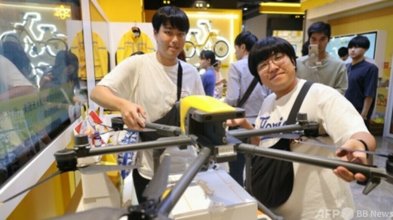 中国最大の通信アプリ「微信(ウィーチャット、WeChat)」のQRコードをスキャンして現在地の黄興公園(Huangxing Park)を認知させた早川公晴(Kousei Hayakawa)さんは、お気に入りのミルクティーを注文した。すると間もなく、携帯電話に「ドローンがご注文の品を集荷中です」との表示が出た。そして注文からわずか17分後に、公園の上空に配達のドローンが現れ、学生たちから歓声が上がった。