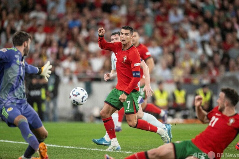 ポルトガルは序盤にスコット・マクトミネイ(Scott McTominay)に先制点を許したが、後半にブルーノ・ミゲル・フェルナンデス(Bruno Miguel Fernandes)のゴールで追いつくと、迎えた88分に途中出場のロナウドが決勝点を挙げた。5日の前節クロアチア戦でキャリア通算900点目を記録していた39歳のロナウドは、これで同901点とした。