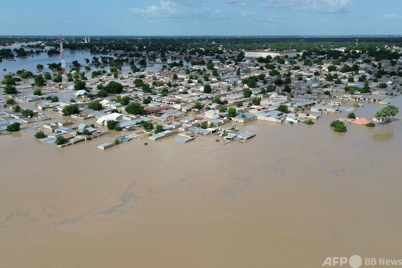 【9月11日 AFP】ナイジェリア北東部ボルノ(Borno)州の州都マイドゥグリ(Maiduguri)が、大規模な洪水被害に見舞われている。国家緊急事態管理庁(NEMA)がAFPと共有した複数の空撮ビデオと写真からは、濁った水に漬かった市街地の様子が確認できた。