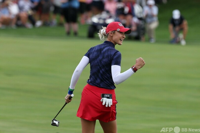 【9月14日 AFP】米国選抜と欧州選抜による女子ゴルフの対抗戦、第19回ソルハイムカップ(Solheim Cup 2024)は13日、米フロリダ州ゲーンズビル(Gainesville)のロバート・トレント・ジョーンズGC(Robert Trent Jones GC、パー72)で開幕し、米国選抜は世界ランキング1位のネリー・コルダ(Nelly Korda)が2勝を挙げる活躍をみせ、初日では過去最多に並ぶポイント差の6対2で欧州選抜をリードした。