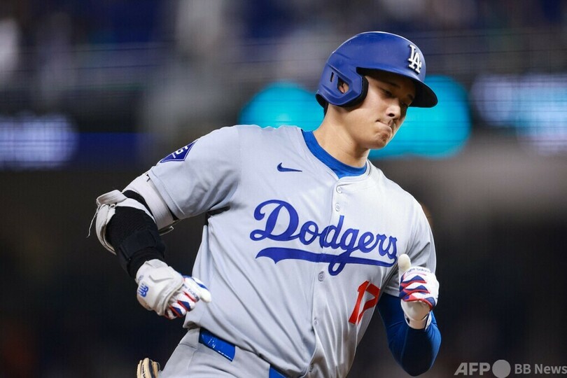 【9月18日 AFPBB News】米大リーグ(MLB)は17日、各地で試合が行われ、ロサンゼルス・ドジャース(Los Angeles Dodgers)の大谷翔平(Shohei Ohtani)はマイアミ・マーリンズ(Miami Marlins)戦に1番・指名打者(DH)で先発出場し、48号2点本塁打を放つなど5打数1安打2打点、3三振だった。この一発でMLB通算219本塁打とし、アジア出身選手の最多記録を更新した。ドジャースは9-11で敗れた。(c)AFPBB News