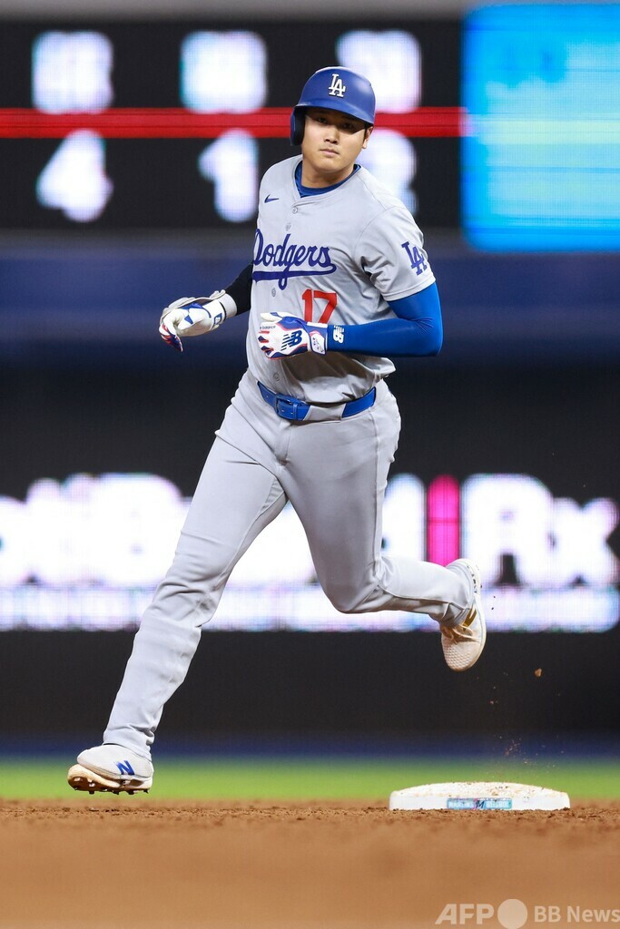 【9月18日 AFPBB News】米大リーグ(MLB)は17日、各地で試合が行われ、ロサンゼルス・ドジャース(Los Angeles Dodgers)の大谷翔平(Shohei Ohtani)はマイアミ・マーリンズ(Miami Marlins)戦に1番・指名打者(DH)で先発出場し、48号2点本塁打を放つなど5打数1安打2打点、3三振だった。この一発でMLB通算219本塁打とし、アジア出身選手の最多記録を更新した。ドジャースは9-11で敗れた。(c)AFPBB News