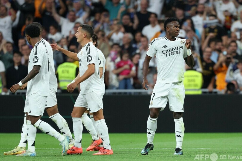 【9月22日 AFP】24-25スペイン1部リーグは21日、第6節の試合が行われ、レアル・マドリード(Real Madrid)はビニシウス・ジュニオール(Vinicius Junior)の活躍でRCDエスパニョール(RCD Espanyol)に4-1で逆転勝利し、首位FCバルセロナ(FC Barcelona)との勝ち点差を暫定で1ポイントに縮めた。
