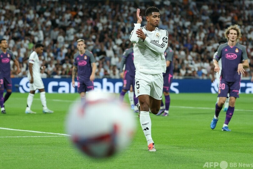 【9月22日 AFP】24-25スペイン1部リーグは21日、第6節の試合が行われ、レアル・マドリード(Real Madrid)はビニシウス・ジュニオール(Vinicius Junior)の活躍でRCDエスパニョール(RCD Espanyol)に4-1で逆転勝利し、首位FCバルセロナ(FC Barcelona)との勝ち点差を暫定で1ポイントに縮めた。