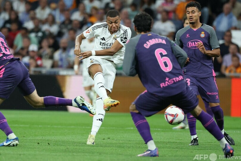 【9月22日 AFP】24-25スペイン1部リーグは21日、第6節の試合が行われ、レアル・マドリード(Real Madrid)はビニシウス・ジュニオール(Vinicius Junior)の活躍でRCDエスパニョール(RCD Espanyol)に4-1で逆転勝利し、首位FCバルセロナ(FC Barcelona)との勝ち点差を暫定で1ポイントに縮めた。