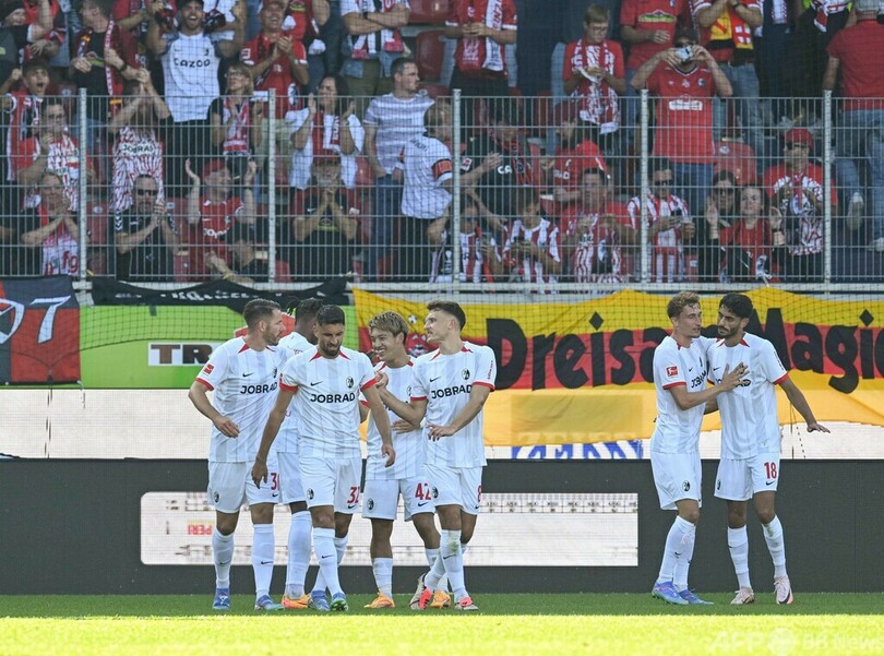 SCフライブルク(SC Freiburg)は堂安律(Ritsu Doan)の先制ゴールなどでハイデンハイム(1. FC Heidenheim)に3-0で快勝。キールは89分に町野修斗(Shuto Machino)が同点ゴールを決めてVfLボーフム(VfL Bochum)と2-2で引き分け、1部で初の勝ち点を獲得した。(c)AFP