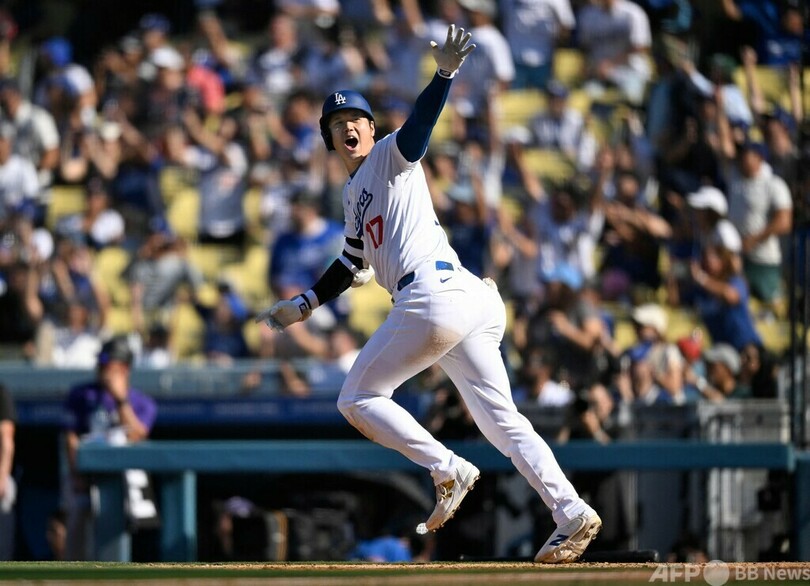 【9月23日 AFPBB News】米大リーグ(MLB)は22日、各地で試合が行われ、ロサンゼルス・ドジャース(Los Angeles Dodgers)の大谷翔平(Shohei Ohtani)はコロラド・ロッキーズ(Colorado Rockies)戦に1番・指名打者(DH)で先発出場し、9回に同点の53号ソロ本塁打を放つなど5打数4安打1打点と活躍した。2盗塁も決め、シーズン「53本塁打、55盗塁」に伸ばした。