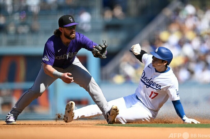 【9月23日 AFPBB News】米大リーグ(MLB)は22日、各地で試合が行われ、ロサンゼルス・ドジャース(Los Angeles Dodgers)の大谷翔平(Shohei Ohtani)はコロラド・ロッキーズ(Colorado Rockies)戦に1番・指名打者(DH)で先発出場し、9回に同点の53号ソロ本塁打を放つなど5打数4安打1打点と活躍した。2盗塁も決め、シーズン「53本塁打、55盗塁」に伸ばした。
