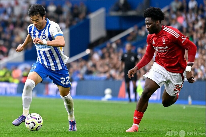 ブライトン・アンド・ホーヴ・アルビオンFC(Brighton & Hove Albion FC)は2-2でノッティンガム・フォレスト(Nottingham Forest)と引き分けた。(c)AFP/Kieran CANNING