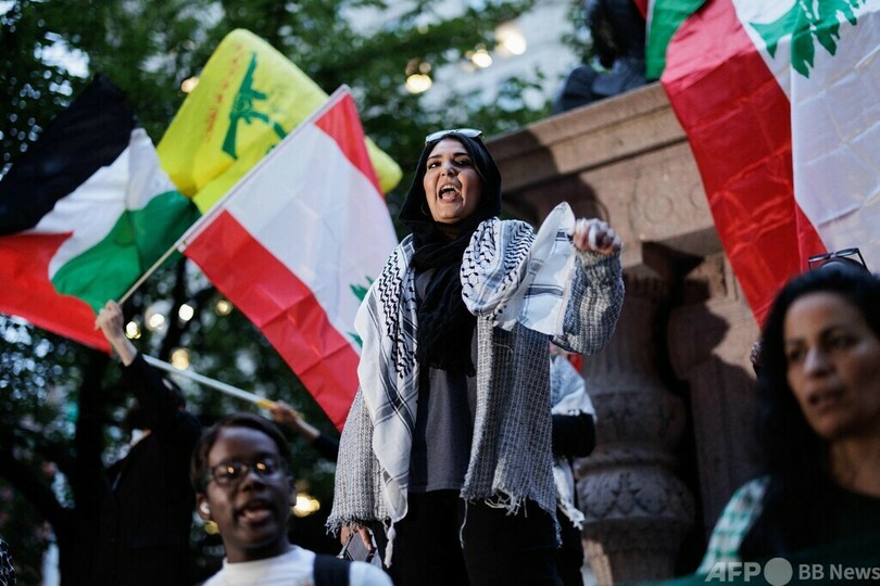 【9月25日 AFP】米国の首都ワシントンやニューヨークで24日、イスラエル軍によるレバノン空爆と米国のイスラエル支援に抗議するデモが行われた。