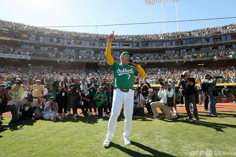 【9月27日 AFP】米大リーグ(MLB)のオークランド・アスレチックス(Oakland Athletics)は26日、本拠地オークランド・コロシアム(Oakland Coliseum)での最後の試合でテキサス・レンジャーズ(Texas Rangers)に3-2で勝利を収め、56年間過ごしたホームに感動的な別れを告げた。