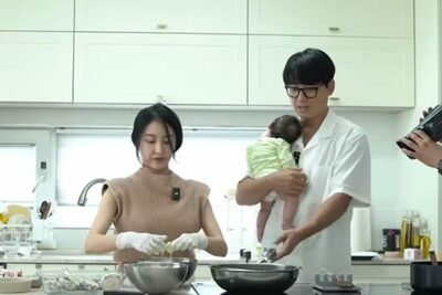 途中、娘が泣き出したため、イ・ジフンは彼女を抱いてキッチンに戻った。アヤネさんは調理を再開し、イ・ジフンは娘を片手で抱えながら調理を手伝った