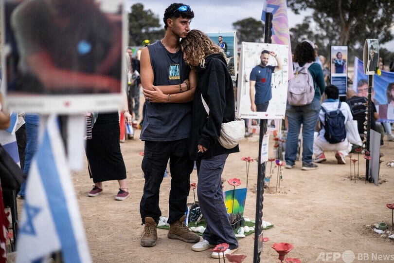 イスラエルで越境攻撃1年の追悼式典、開始直後にガザから飛翔体