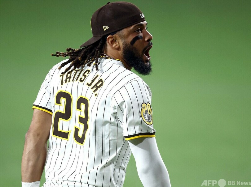 2回に2点本塁打を放ったパドレスのフェルナンド・タティス・ジュニア(Fernando Tatis Jr.)は「とにかく最高。他に何と言えるだろうか? 美しい時間だ」と興奮気味に話し、「まだまだ仕事は残されているから一歩ずつだ。試合の初球からハードに戦う。それが自分たちに必要な姿勢だ」と語った。(c)AFP