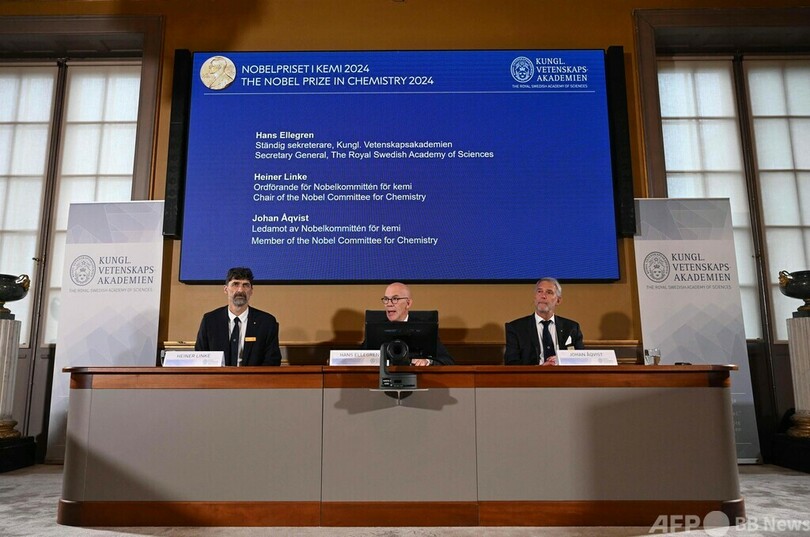 【10月9日 AFP】スウェーデン王立科学アカデミー(Royal Swedish Academy of Sciences)は9日、2024年のノーベル化学賞(Nobel Prize in Chemistry)を、人工知能(AI)を用いたタンパク質の構造予測の研究における功績で、米国人のデビッド・ベイカー(David Baker)氏とジョン・ジャンパー(John Jumper)氏、英国人のデミス・ハサビス(Demis Hassabis)氏の3氏に授与すると発表した。