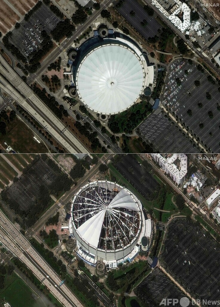 【10月11日 AFP】米フロリダ州に9日に上陸したハリケーン「ミルトン(Milton)」。猛烈な強風を伴うハリケーンの爪痕を捉えた衛星画像が10日、公開された。同州は2週間前にも別のハリケーンの直撃を受けたばかりだった。