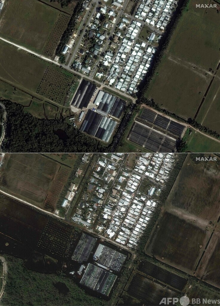 米宇宙技術会社マクサー・テクノロジーズ(Maxar Technologies)による衛星画像では、ハリケーン直撃前後の様子が確認できる。