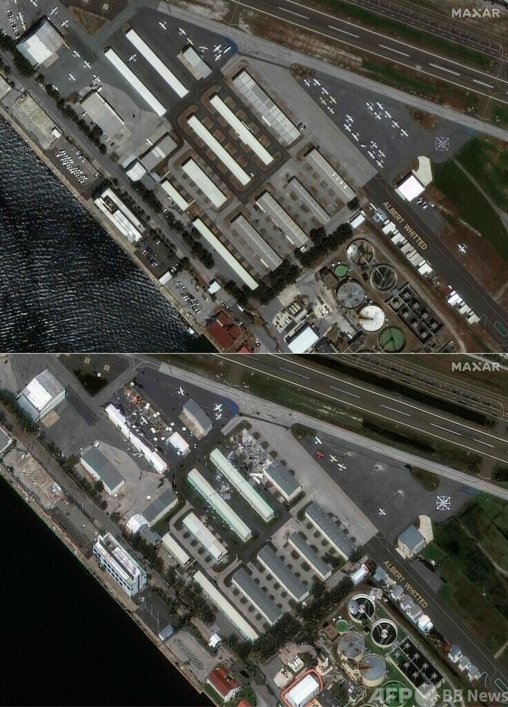 米宇宙技術会社マクサー・テクノロジーズ(Maxar Technologies)による衛星画像では、ハリケーン直撃前後の様子が確認できる。