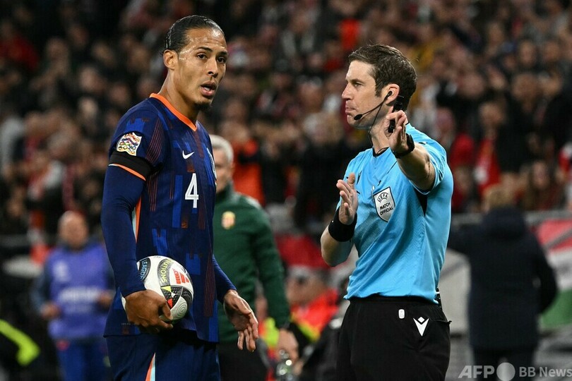 ファン・ダイクは、ハンガリーと1-1の引き分けに終わった11日のUEFAネーションズリーグ(UEFA Nations League 2024-25)で、イエローカード2枚をもらって退場していた。リバプールは「代表の活動から早期に解放するという判断が下されたため、二人はそれぞれの代表にはこれ以上帯同しない」と話している。(c)AFP
