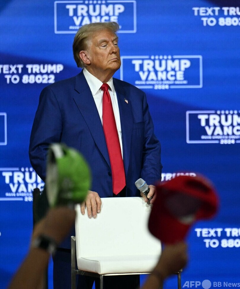 ハリス陣営は最近、トランプ氏の心身の状態を問題視しているが、この日のトランプ氏の奇態に関しても、「訳が分からなくなり、混乱し、ステージで固まったようだ」と指摘した。(c)AFP