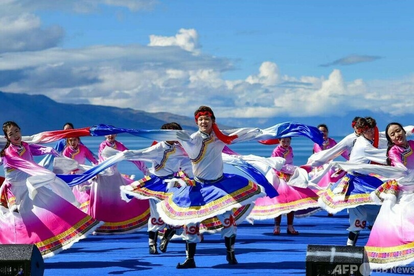 「文成姫」を企画制作して興行を行う域上和美集団の李元媛(Li Yuanyuan)総裁によると、初演は2013年8月1日で、これまで2000回以上の公演を行った。興行収入は累計14億元(約295億円)近くに達した。李総裁は、「文化は観光の魂であり、観光は文化の媒体です」と述べた。(c)Peopleʼs Daily/AFPBB News