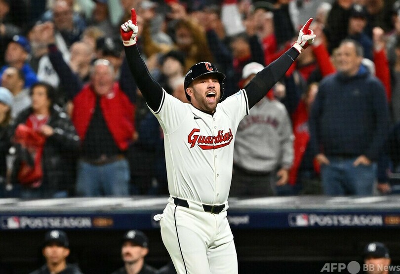 【10月18日 AFP】24MLBは17日、ア・リーグの優勝決定シリーズ(ALCS、7回戦制)第3戦が行われ、クリーブランド・ガーディアンズ(Cleveland Guardians)は延長10回にデビッド・フライ(David Fry)が2点本塁打を放ち、7‐5でニューヨーク・ヤンキース(New York Yankees)から劇的なサヨナラ勝ちを収めた。
