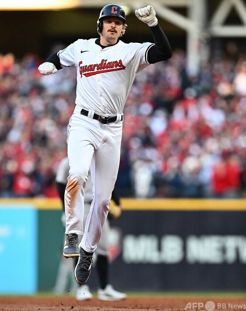 【10月18日 AFP】24MLBは17日、ア・リーグの優勝決定シリーズ(ALCS、7回戦制)第3戦が行われ、クリーブランド・ガーディアンズ(Cleveland Guardians)は延長10回にデビッド・フライ(David Fry)が2点本塁打を放ち、7‐5でニューヨーク・ヤンキース(New York Yankees)から劇的なサヨナラ勝ちを収めた。