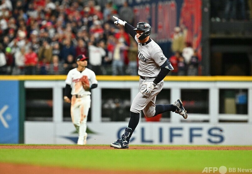 【10月18日 AFP】24MLBは17日、ア・リーグの優勝決定シリーズ(ALCS、7回戦制)第3戦が行われ、クリーブランド・ガーディアンズ(Cleveland Guardians)は延長10回にデビッド・フライ(David Fry)が2点本塁打を放ち、7‐5でニューヨーク・ヤンキース(New York Yankees)から劇的なサヨナラ勝ちを収めた。