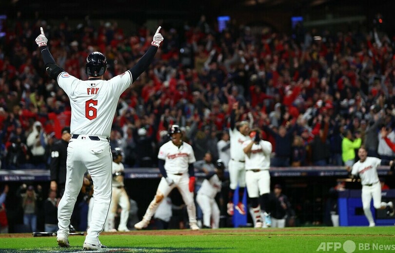 【10月18日 AFP】24MLBは17日、ア・リーグの優勝決定シリーズ(ALCS、7回戦制)第3戦が行われ、クリーブランド・ガーディアンズ(Cleveland Guardians)は延長10回にデビッド・フライ(David Fry)が2点本塁打を放ち、7‐5でニューヨーク・ヤンキース(New York Yankees)から劇的なサヨナラ勝ちを収めた。