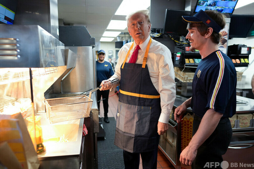 一方のトランプ氏は、フィラデルフィア(Philadelphia)郊外のマクドナルドの店舗で、エプロン姿で満面の笑みを浮かべながらフライドポテトを揚げて見せ、「この仕事は嫌いじゃない」と話した。