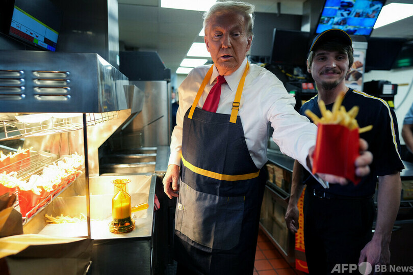 一方のトランプ氏は、フィラデルフィア(Philadelphia)郊外のマクドナルドの店舗で、エプロン姿で満面の笑みを浮かべながらフライドポテトを揚げて見せ、「この仕事は嫌いじゃない」と話した。
