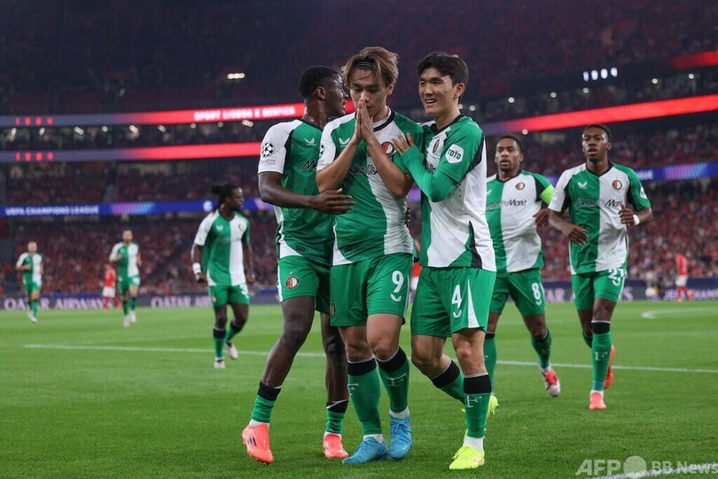 【10月24日 AFP】サッカー欧州チャンピオンズリーグ(UEFA Champions League 2024-25)は23日、リーグフェーズ第3節が行われ、フェイエノールト(Feyenoord、オランダ)は上田綺世(Ayase Ueda)の大会初ゴールなどにより、敵地でベンフィカ(Benfica、ポルトガル)に3‐1で快勝した。