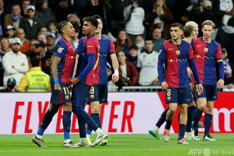 首位バルセロナは後半の2分間にレワンドフスキが連続ゴールを決めると、17歳のラミネ・ヤマル(Lamine Yamal)とラフィーニャ(Raphinha)もゴールを追加し、クラシコ連敗を4で止めるとともに、レアルとの勝ち点差を6に広げた。