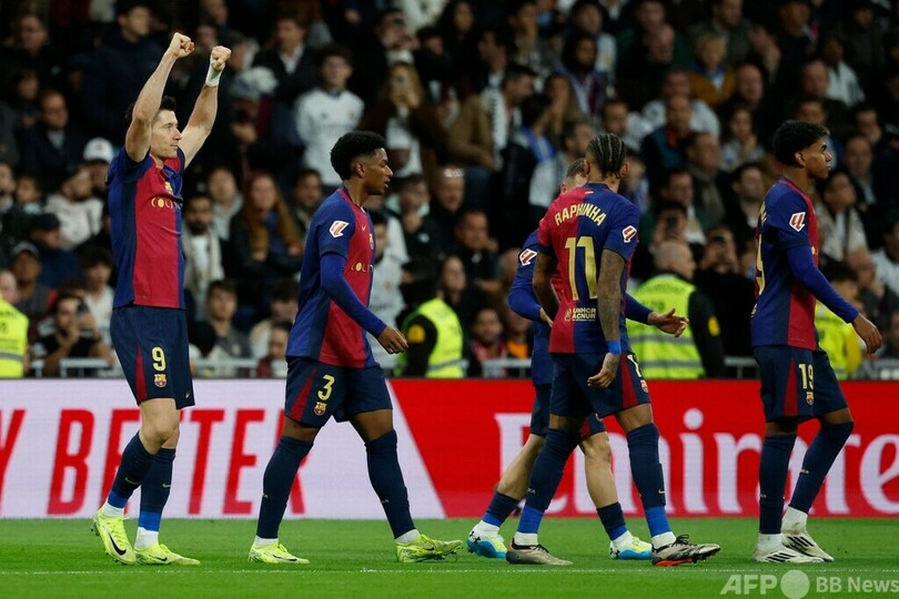 【10月27日 AFP】24-25スペイン1部リーグは26日、第11節の試合が行われ、レアル・マドリード(Real Madrid)とFCバルセロナ(FC Barcelona)の伝統の一戦「エル・クラシコ(El Clasico)」は、バルセロナがロベルト・レワンドフスキ(Robert Lewandowski)の2ゴールなどで4-0の大勝を収めた。