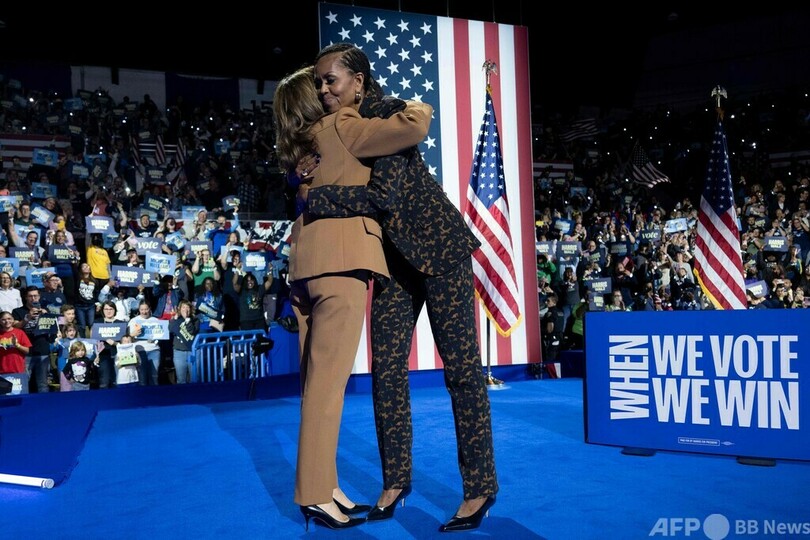 ミシェル氏はハリス氏と共に登壇し、同氏が当選すれば「米国の素晴らしい大統領」になると称賛。一方で、世論調査では接戦が予想され、ここ数週間はハリス氏の勢いが失われていることに焦りと不安を抱いているとも明かした。