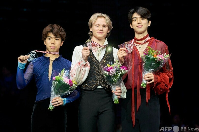 佐藤駿(Shun Sato)は2回転倒するなどミスが続いたが、フリー164.64点、合計261.16点で2位に入った。車俊煥(Cha Jun-hwan、チャ・ジュンファン、韓国)が4回転ジャンプ2本を組み込んだ演技で171.93点を獲得し、合計260.31点でショートプログラム(SP)4位から3位に順位を上げた。前年王者の山本草太(Sota Yamamoto)は4位だった。