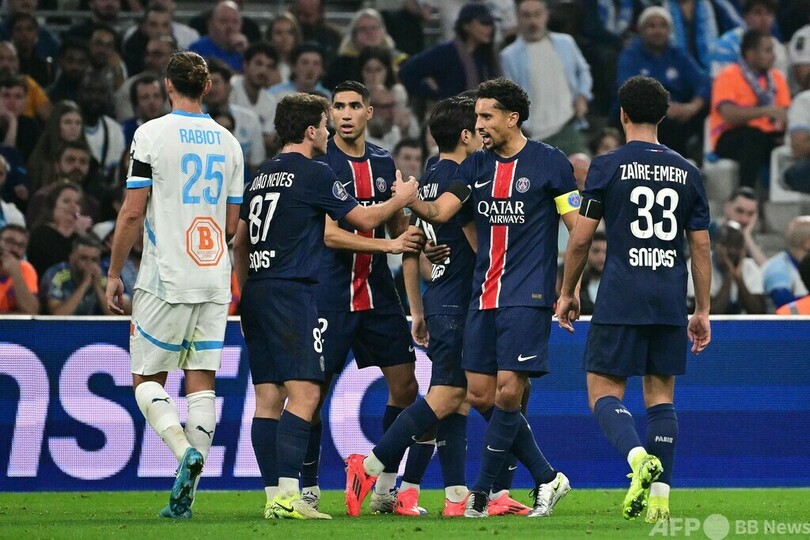 【10月28日 AFP】24-25フランス・リーグ1は27日、第9節の試合が行われ、パリ・サンジェルマン(Paris Saint-Germain、PSG)は3-0でオリンピック・マルセイユ(Olympique de Marseille)に快勝。2位のASモナコ(AS Monaco)が今季初黒星を喫したため、両チームの勝ち点差は3に広がった。