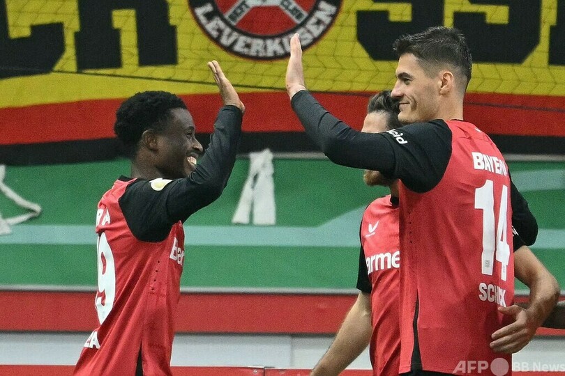 連覇を狙うバイヤー・レバークーゼン(Bayer Leverkusen)もパトリック・シック(Patrik Schick)の2ゴールなどでSVエルバースバーク(SV Elversberg)を3-0で退けた。(c)AFP