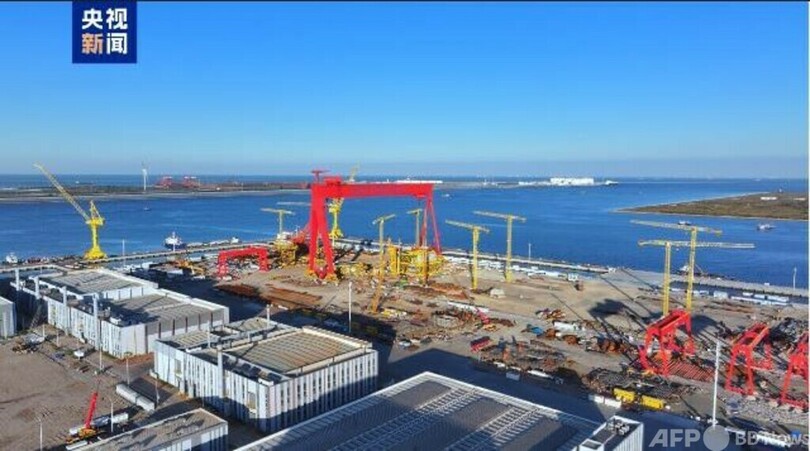 この基地は2期に分けて建設され、2022年6月に第1期工事が開始して以来、海洋プラットフォーム35基の建設が完了し、累計出荷量は8万7000トンを超え、生産ライン全体の作業効率は20%近く向上し、総組立効率は30%以上向上しました。(c)CGTN Japanese/AFPBB News