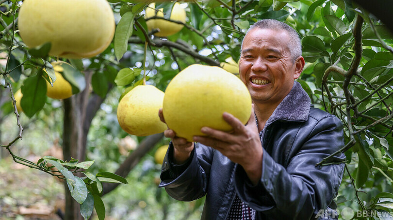 岑鞏県内の「思州ザボン」の栽培面積は3万6100ムー(約2400ヘクタール)で、収穫量は5万9500トン、年間売上高は2億9700万元(約63億6000万円)に達する見込みです。(c)CGTN Japanese/AFPBB News