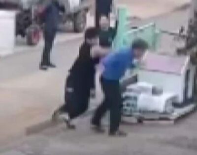 防犯カメラの映像には、男性が隣家の女性ともめている時、近くにいた孫から突然2回殴られ、倒れて起き上がれなくなる様子が映っていた。