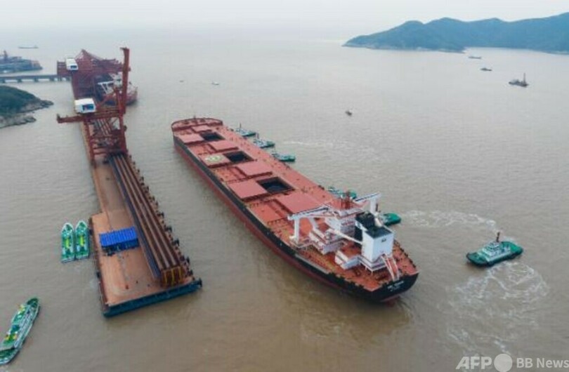 寧波舟山港の鼠浪湖鉱石中継埠頭は中国最大の海上鉄鉱石中継埠頭兼混合鉱基地であり、北東アジアの鉄鉱石国際分配拠点であり、内陸水系水運と海運の中継個所でもあります。鼠浪湖鉱石中継埠頭は開港以来、海事部門の支援を受けて40万トン級鉱砂船が延べ380回余り接岸し、鉄鉱石の中継量は4億9000万トンを超えました。世界で航行中の40万トン級の鉱石運搬船68隻は全て、この埠頭に停泊したことがあります。(c)CGTN Japanese/AFPBB News