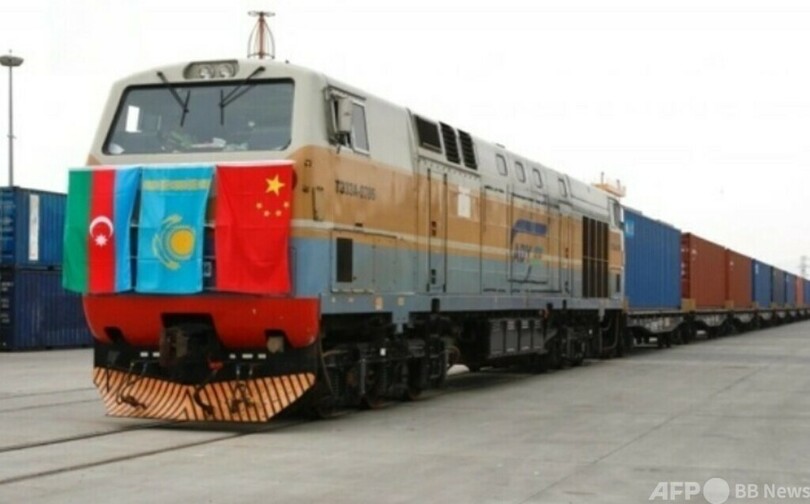 アゼルバイジャン国営通信社のAZERTACによりますと、同国初となる輸出ブロックトレインが中国へ向かうことは、両国の経済・運輸関係が新たな段階に入るとともに、国際貨物輸送分野における同国の戦略的役割がさらに強化されることを示すものです。「中間回廊」国際輸送ルートを通じて中国からアゼルバイジャンへの通過貨物と輸入貨物の輸送と、アゼルバイジャンから中国への輸出貨物の輸送により、「中間回廊」の効率がさらに向上する見込みです。(c)CGTN Japanese/AFPBB News